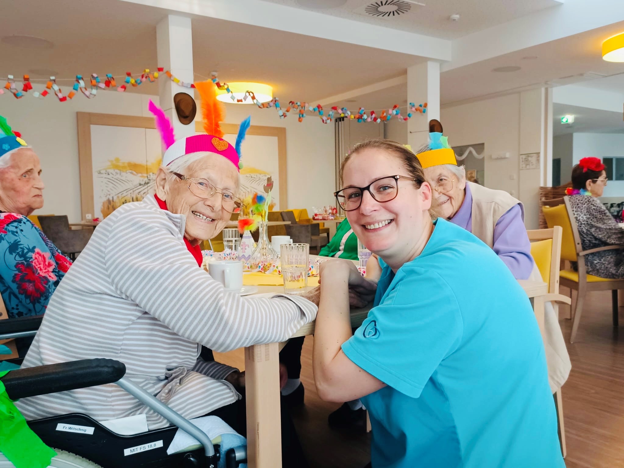 Ganz unter dem Motto „Wilder Westen“ feierten unsere Bewohner:innen und Mitarbeiter:innen bei selbstgemachten Maskierungen und Faschingsdekoration am Rosenmontag den Fasching. Als Programmpunkte waren mehrere Showeinlagen unserer Mitarbeiter:innen sowie ein Schätzspiel mit Preisverleihung. Die Stimmung war ausgelassen inklusive gesamter Polonaise durch das Haus. Über die tolle Faschingsfeier werden die Anwesenden noch lange mit einem strahlenden Lächeln im Gesicht erzählen.