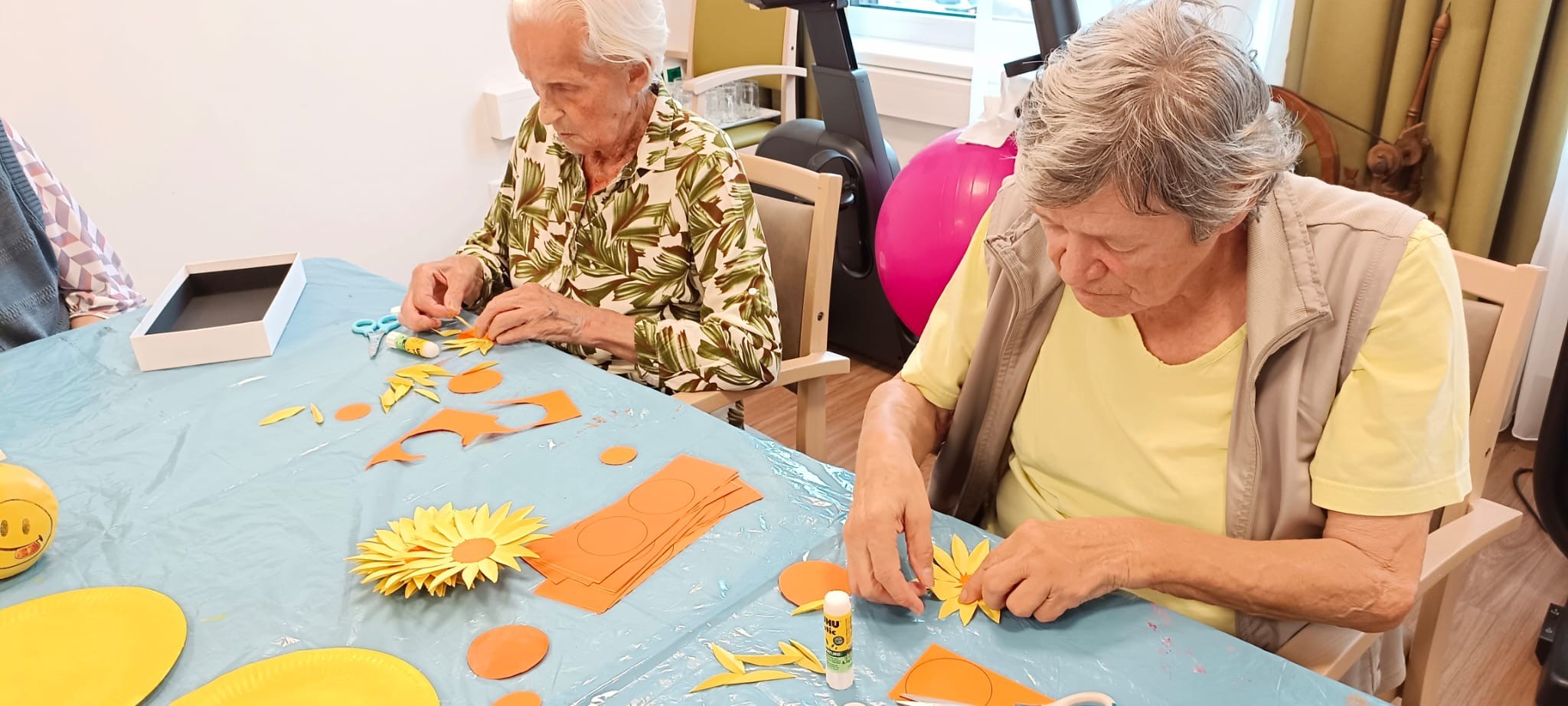 Im SeneCura Pflegezentrum Fohnsdorf herrschte kürzlich kreative Herbststimmung, als die Bewohner:innen wunderschöne Herbstdekoration kreierten. Gemeinsam wurden tolle Blumen, Blätter und andere kleine Kunstwerke gebastelt. Während des Bastelns entstanden tolle Gespräche und die Bewohner:innen konnten ihrer Kreativität gleichzeitig freien Lauf lassen. Die selbstgebastelte Dekoration der Seniorinnen und Senioren schmückt ab sofort die Räume des Pflegezentrums und sorgt für gemütliche Herbststimmung im Haus.